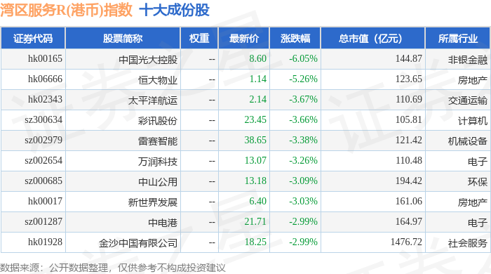 湾区服务R(港币)(480012)指数十大成份股详情如下: