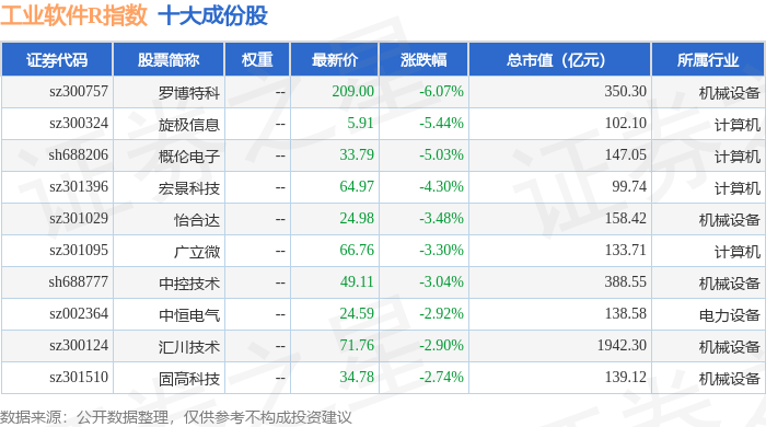 近10日内工业软件R(480034)指数成份股做了调整,新纳入了1只股票,剔除了1只股票。