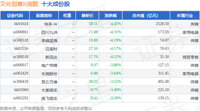 近10日内文化创意R(480046)指数成份股做了调整,新纳入了2只股票,剔除了6只股票。