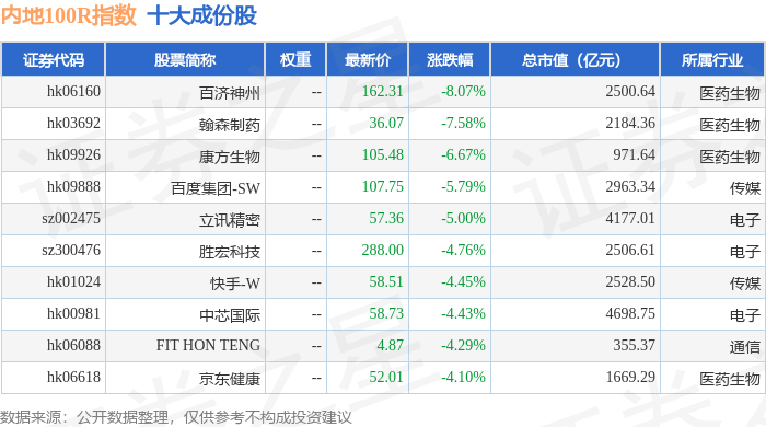 近10日内内地100R(483001)指数成份股做了调整,新纳入了4只股票,剔除了4只股票。