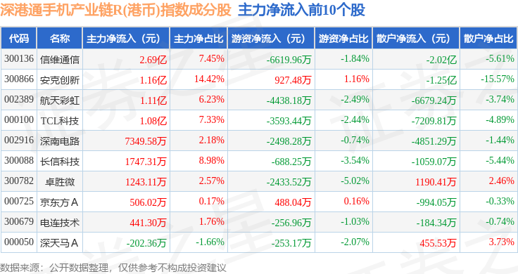 深港通手机产业链R(港币)(483010)指数十大成份股详情如下: