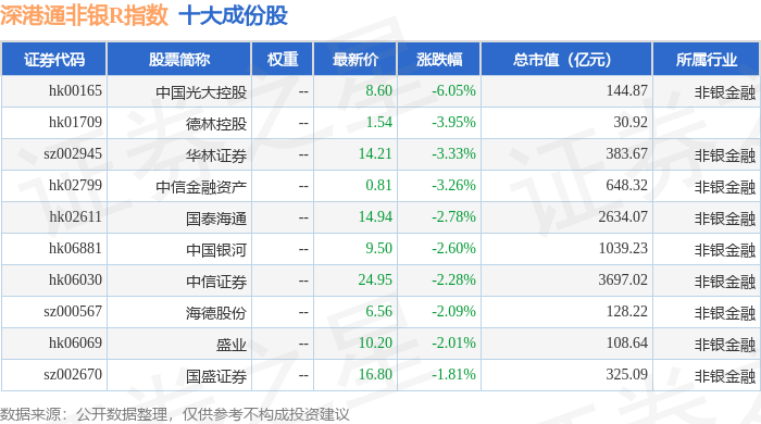 资金流向方面,深港通非银R(483053)指数成份股当日主力资金净流出合计2.39亿元,游资资金净流入合计2404.84万元,散户资金净流入合计2.15亿元。成份股资金流向详情见下表: