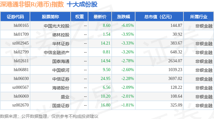 深港通非银R(港币)(483054)指数十大成份股详情如下: