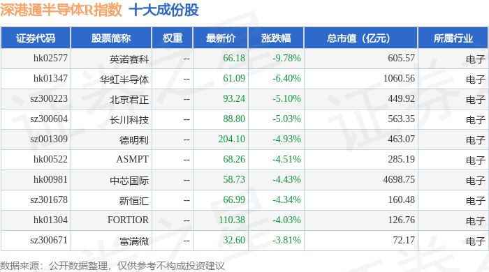 深港通半导体R(483067)指数十大成份股详情如下: