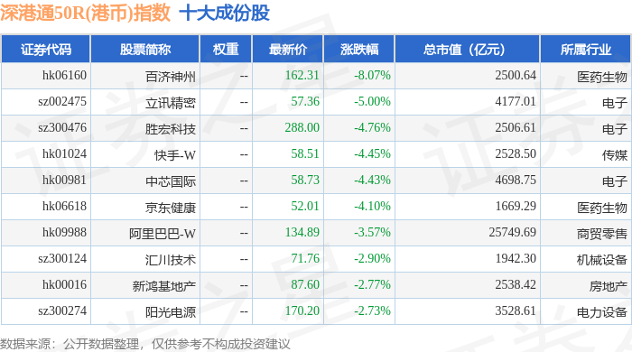深港通50R(港币)(483092)指数十大成份股详情如下: