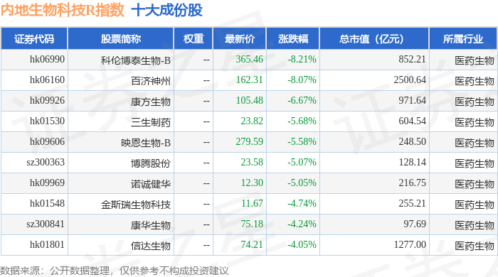 近10日内内地生物科技R(483101)指数成份股做了调整,剔除了4只股票。
