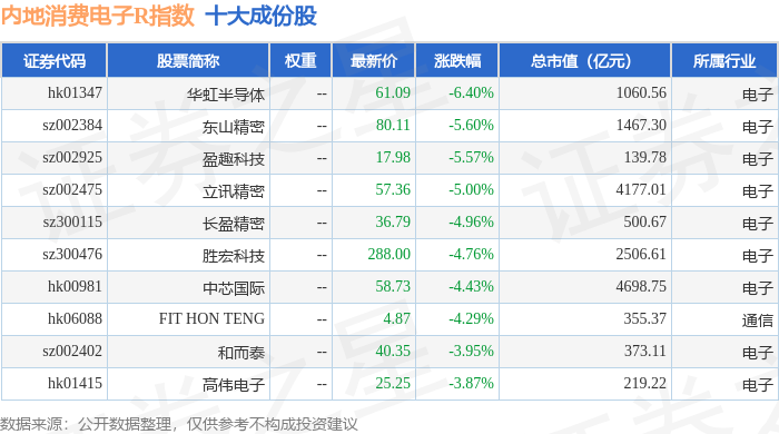 近10日内内地消费电子R(483105)指数成份股做了调整,剔除了2只股票。