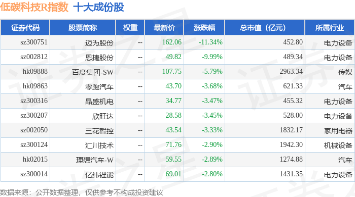 低碳科技R(483160)指数十大成份股详情如下:
