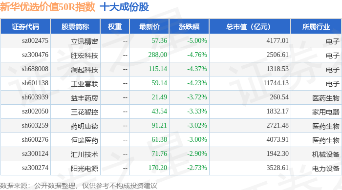 新华优选价值50R(489004)指数十大成份股详情如下: