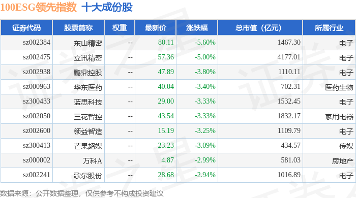 近10日内100ESG领先(970030)指数成份股做了调整,新纳入了5只股票,剔除了5只股票。