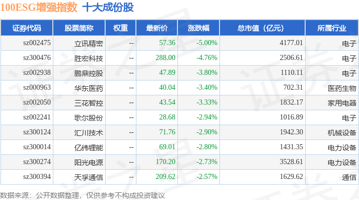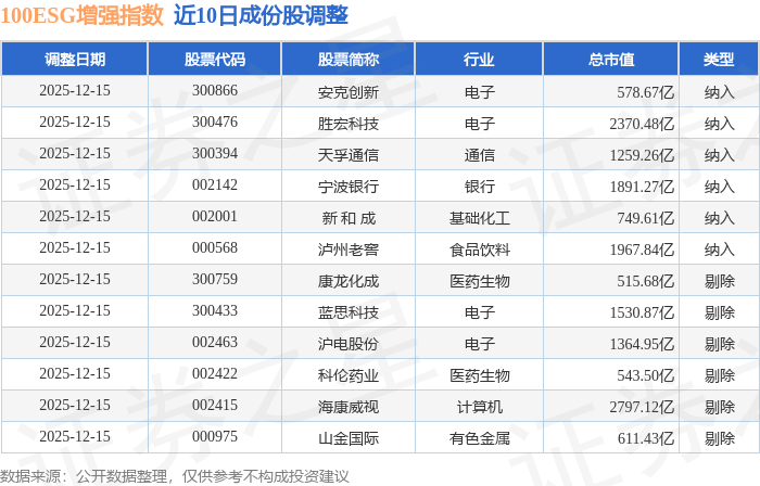 近10日内100ESG增强(970033)指数成份股做了调整,新纳入了6只股票,剔除了6只股票。