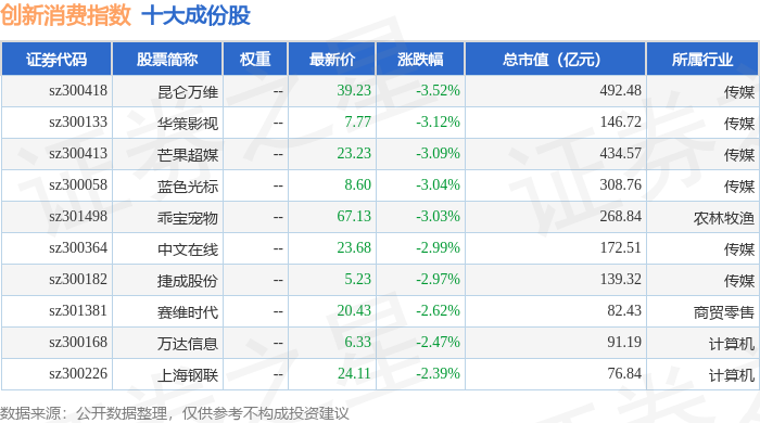 近10日内创新消费(970041)指数成份股做了调整,新纳入了3只股票,剔除了3只股票。