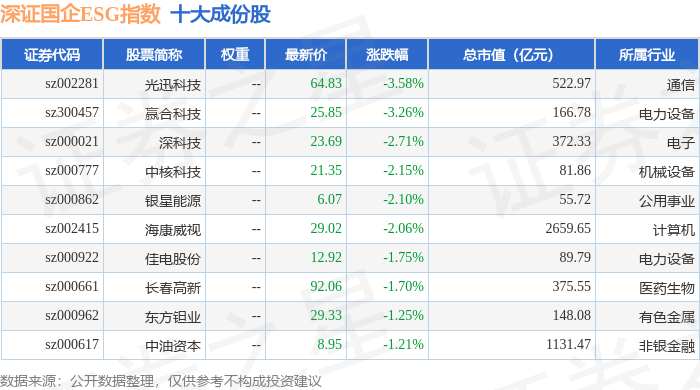 深证国企ESG(970055)指数十大成份股详情如下: