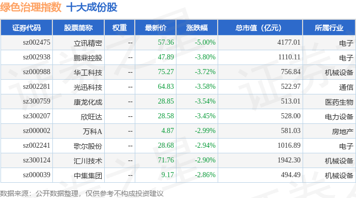 近10日内绿色治理(980058)指数成份股做了调整,新纳入了10只股票,剔除了10只股票。