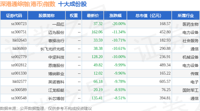 深港通综指(港币)(983006)指数十大成份股详情如下: