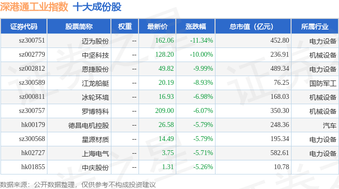 深港通工业(983017)指数十大成份股详情如下: