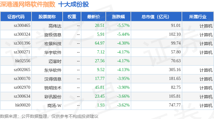 深港通网络软件(983047)指数十大成份股详情如下: