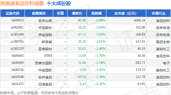 深港通食品饮料(983065)指数十大成份股详情如下: