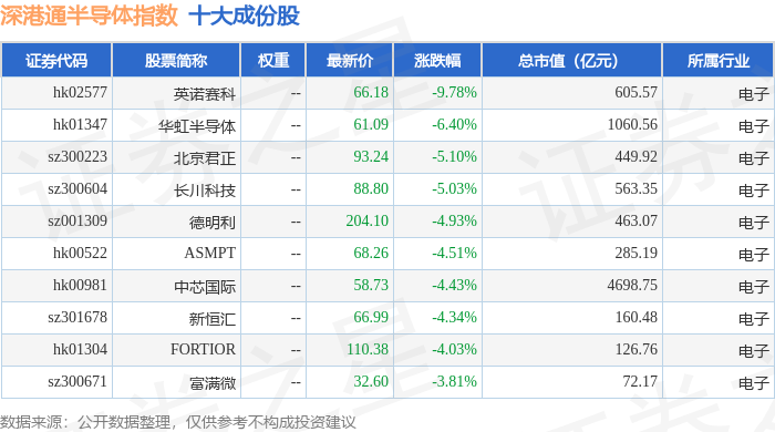 深港通半导体(983067)指数十大成份股详情如下: