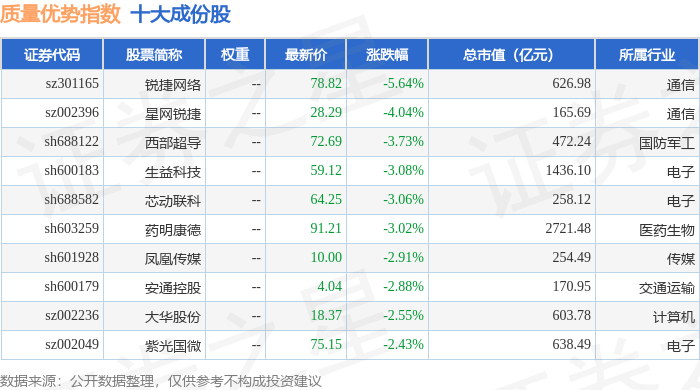 质量优势(989017)指数十大成份股详情如下: