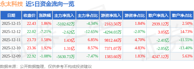 12月15日的资金流向数据方面,主力资金净流出5102.62万元,占总成交额4.34%,游资资金净流入2163.5万元,占总成交额1.84%,散户资金净流入2939.12万元,占总成交额2.5%。