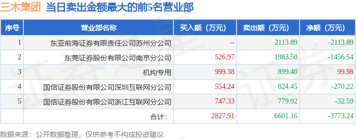 证券之星消息,沪深交易所2025年12月16日公布的交易公开信息显示,三木集团(000632)因日跌幅偏离值达到7%的前5只证券登上龙虎榜。此次是近5个交易日内第2次上榜。