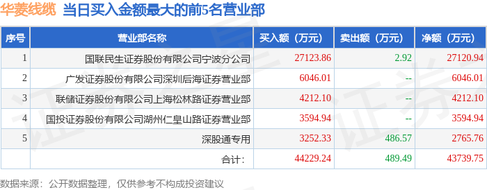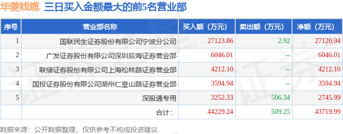 从龙虎榜公布的当日买卖数据来看,北向资金合计净买入2765.76万元。上海松林路、流沙河、宁波桑田路等知名游资榜上有名。(知名游资上海松林路一般指联储证券股份有限公司上海松林路证券营业部席位、知名游资流沙河一般指中国银河证券股份有限公司绍兴证券营业部席位、知名游资宁波桑田路一般指国盛证券有限责任公司宁波桑田路证券营业部席位,根据市场资料整理,仅供参考)