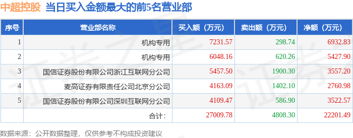 证券之星消息,沪深交易所2025年12月16日公布的交易公开信息显示,中超控股(002471)因日换手率达到20%的前5只证券登上龙虎榜。此次是近5个交易日内第2次上榜。