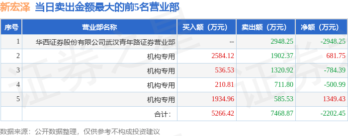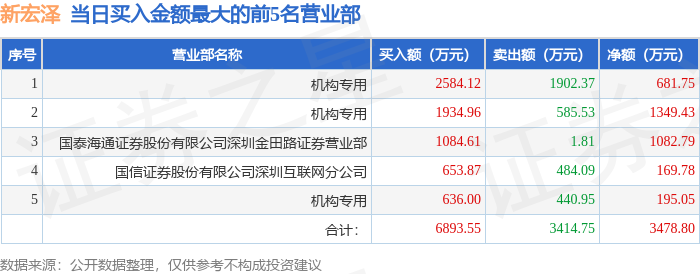 证券之星消息,沪深交易所2025年12月16日公布的交易公开信息显示,新宏泽(002836)因日振幅值达到15%的前5只证券登上龙虎榜。此次是近5个交易日内第2次上榜。
