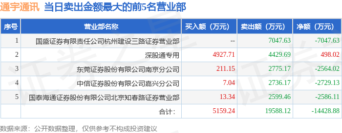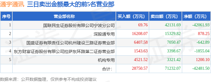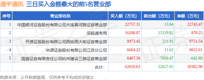 证券之星消息,沪深交易所2025年12月16日公布的交易公开信息显示,通宇通讯(002792)因日涨幅偏离值达到7%的前5只证券,连续三个交易日内,涨幅偏离值累计达到20%的证券登上龙虎榜。此次是近5个交易日内第2次上榜。