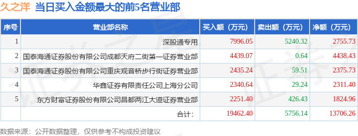 证券小知识:龙虎榜是交易所披露的竞价交易公开信息,现身龙虎榜的个股都是当日最为活跃的个股,是投资者日常重点关注的数据。交易所公布当日买入金额和卖出金额前五名的席位,其中一些席位代表特殊意义,如机构专用席位是指基金专用席位、券商自营专用席位、社保专用席位、券商理财专用席位、保险机构专用席位、保险机构租用席位、QFII专用席位等机构投资者买卖证券的专用通道和席位。深股通专用、沪股通专用为北向资金的交易席位。从龙虎榜数据可以发现和研究机构、游资和散户的资金动向。一些营业部席位经常上榜,市场知名度较高,投资者整理代表散户、游资、量化等不同资金的营业部席位。