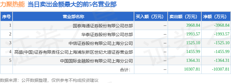 证券之星消息,沪深交易所2025年12月16日公布的交易公开信息显示,力聚热能(603391)因有价格涨跌幅限制的日收盘价格跌幅偏离值达到7%的前五只证券登上龙虎榜。此次是近5个交易日内第1次上榜。