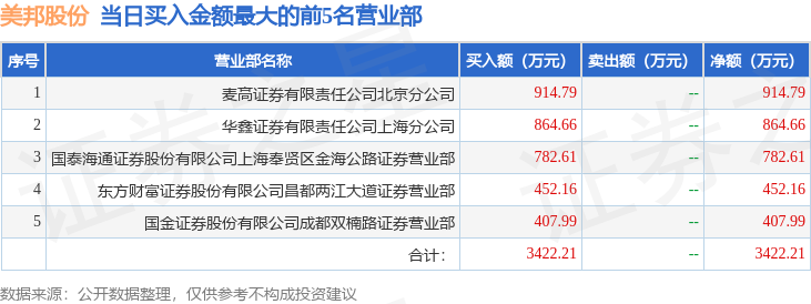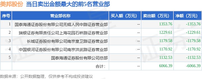 证券之星消息,沪深交易所2025年12月16日公布的交易公开信息显示,美邦股份(605033)因有价格涨跌幅限制的日价格振幅达到15%的前五只证券登上龙虎榜。此次是近5个交易日内第1次上榜。