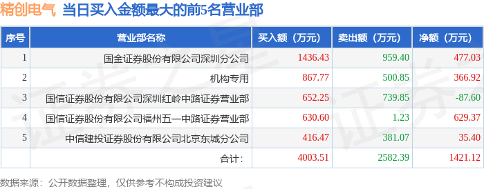 从龙虎榜公布的当日买卖数据来看,机构合计净买入366.92万元。呼家楼等知名游资榜上有名。(知名游资呼家楼一般指中信建投证券股份有限公司北京东城分公司席位,根据市场资料整理,仅供参考)