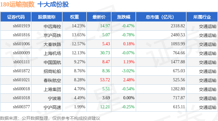 资金流向方面,180运输(000027)指数成份股当日主力资金净流出合计8755.08万元,游资资金净流入合计7980.96万元,散户资金净流入合计774.12万元。成份股资金流向详情见下表: