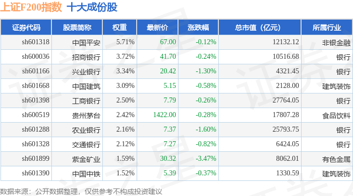 证券之星消息,12月16日,上证F200(000098)指数报收于5396.74点,跌0.92%,成交1586.8亿元,换手率0.43%。当日该指数成份股中,上涨的有37家,南钢股份以2.0%的涨幅领涨,下跌的有158家,中金黄金以5.53%的跌幅领跌。