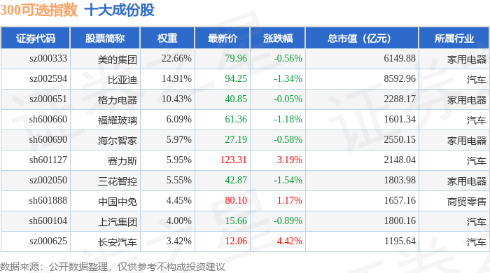 证券之星消息,12月16日,300可选(000911)指数报收于6455.29点,跌0.28%,成交263.01亿元,换手率0.94%。当日该指数成份股中,上涨的有4家,长安汽车以4.42%的涨幅领涨,下跌的有15家,华利集团以4.91%的跌幅领跌。