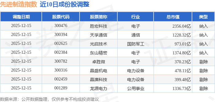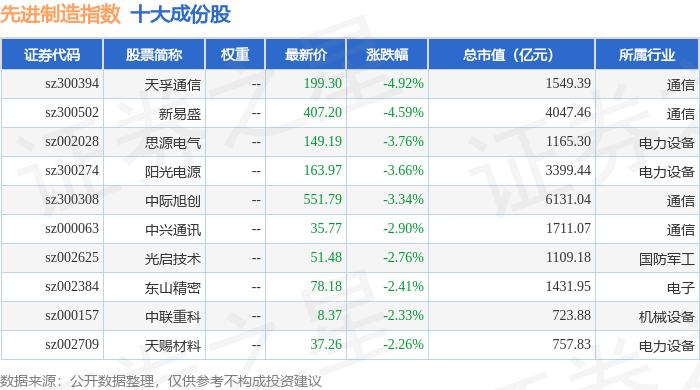 先进制造(399260)指数十大成份股详情如下: