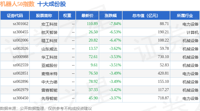 机器人50(399283)指数十大成份股详情如下: