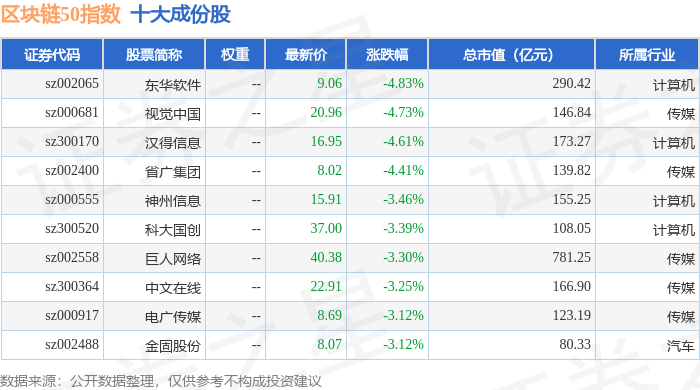 证券之星消息,12月16日,区块链50(399286)指数报收于3856.51点,跌0.84%,成交395.55亿元,换手率2.12%。当日该指数成份股中,上涨的有14家,恒宝股份以9.98%的涨幅领涨,下跌的有36家,东华软件以4.83%的跌幅领跌。