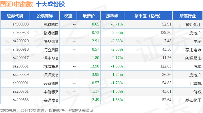 国证B指(399318)指数十大成份股详情如下: