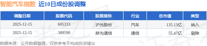 近10日内智能汽车(399432)指数成份股做了调整,新纳入了1只股票,剔除了1只股票。