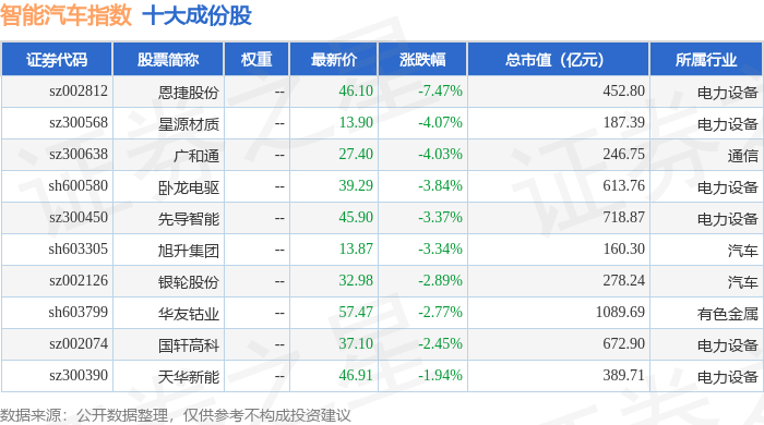 智能汽车(399432)指数十大成份股详情如下: