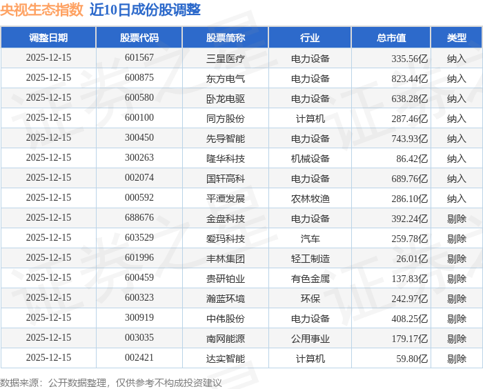 央视生态(399556)指数十大成份股详情如下: