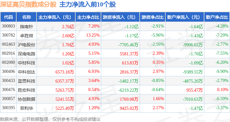 资金流向方面,深证高贝(399662)指数成份股当日主力资金净流出合计140.67亿元,游资资金净流入合计37.46亿元,散户资金净流入合计103.21亿元。成份股资金流向详情见下表: