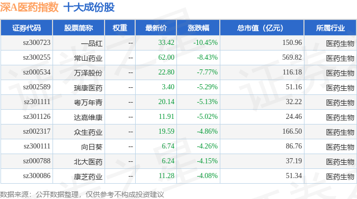 深A医药(399674)指数十大成份股详情如下: