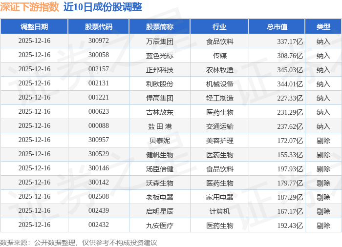 近10日内深证下游(399706)指数成份股做了调整,新纳入了7只股票,剔除了7只股票。