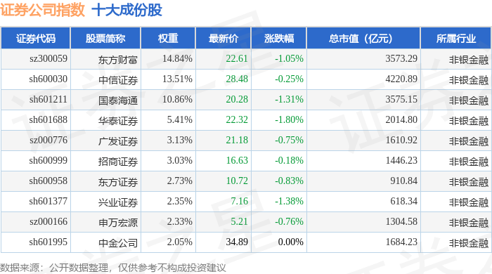 证券公司(399975)指数十大成份股详情如下: