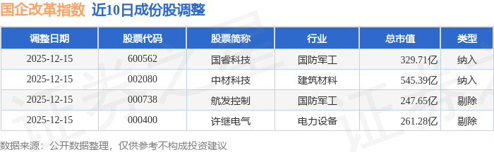 近10日内国企改革(399974)指数成份股做了调整,新纳入了2只股票,剔除了2只股票。