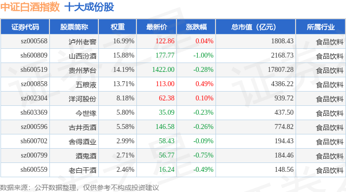 近10日内中证白酒(399997)指数成份股做了调整,剔除了1只股票。